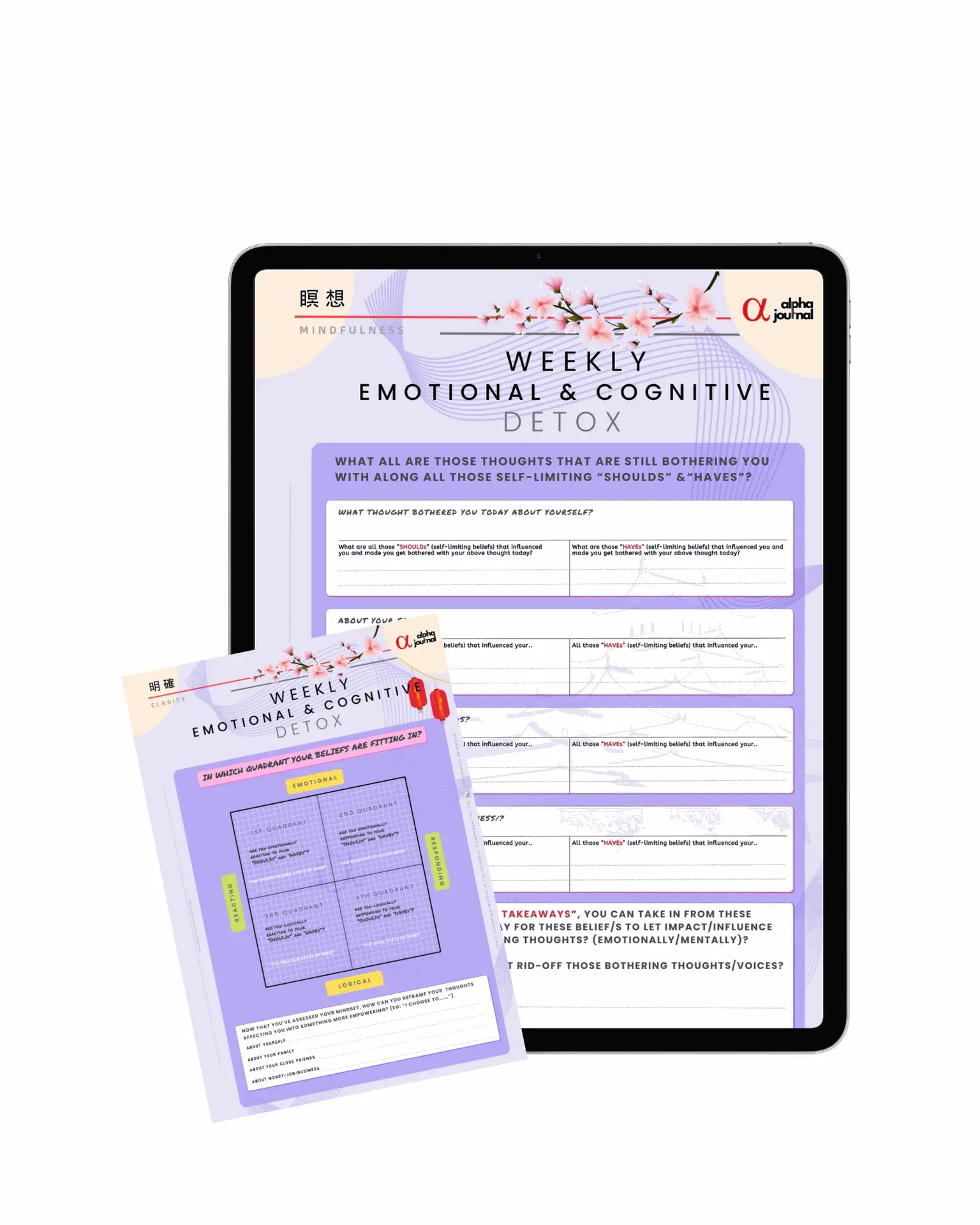 The one-of-its-kind Detox Matrix Tool, an in-house researched and developed tool for your Weekly reflection to help you identify and distinguish in whether you are reacting emotionally or responding logically to your mental self-limiting beliefs.