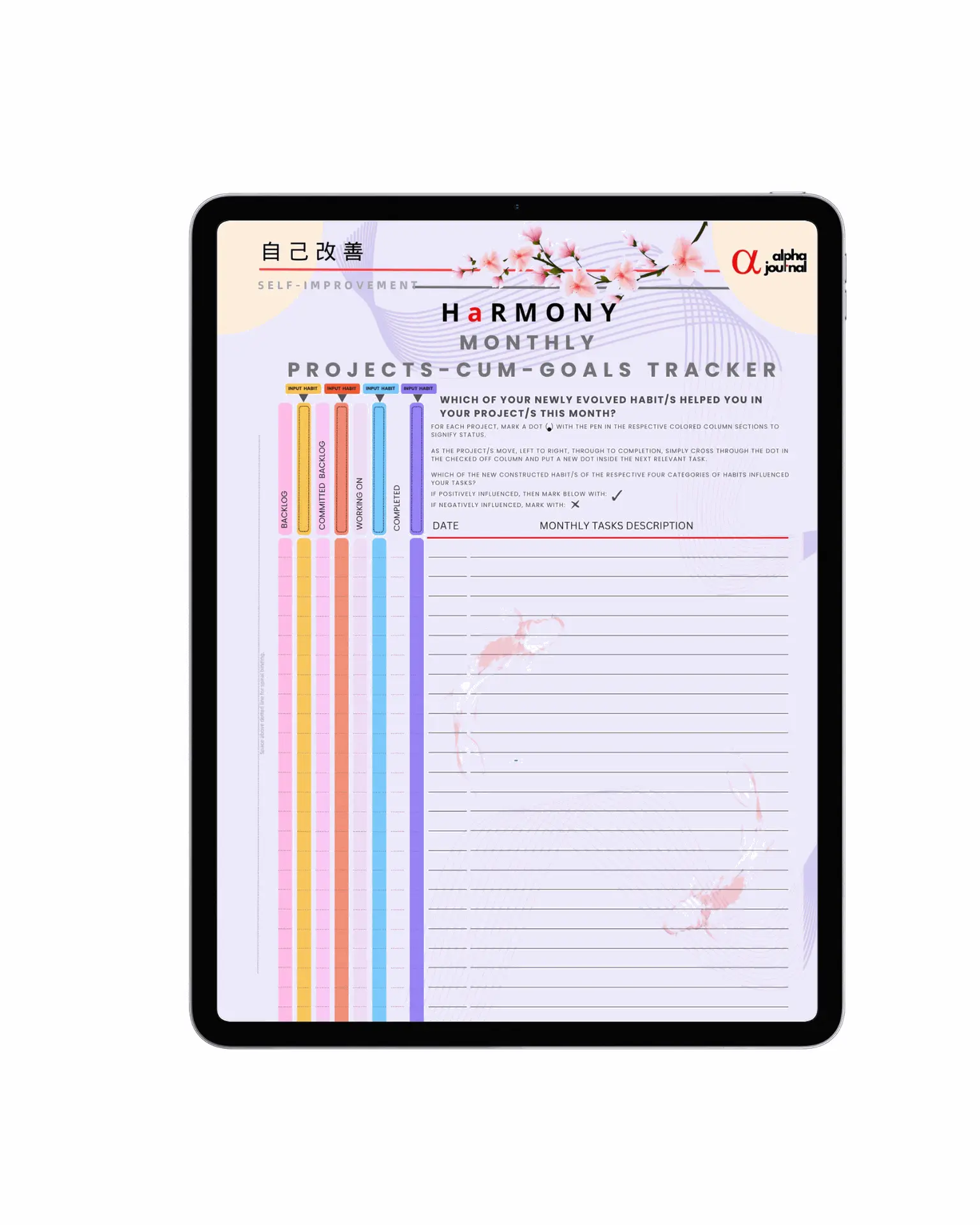 Harmony (Projects-cum-Goals) Planner helps you with a clear, comprehensive snapshot of your projects on a monthly basis.